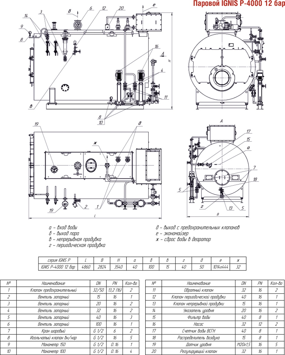 Технические характеристики парового трёхходового котла ARCUS IGNIS P-4000